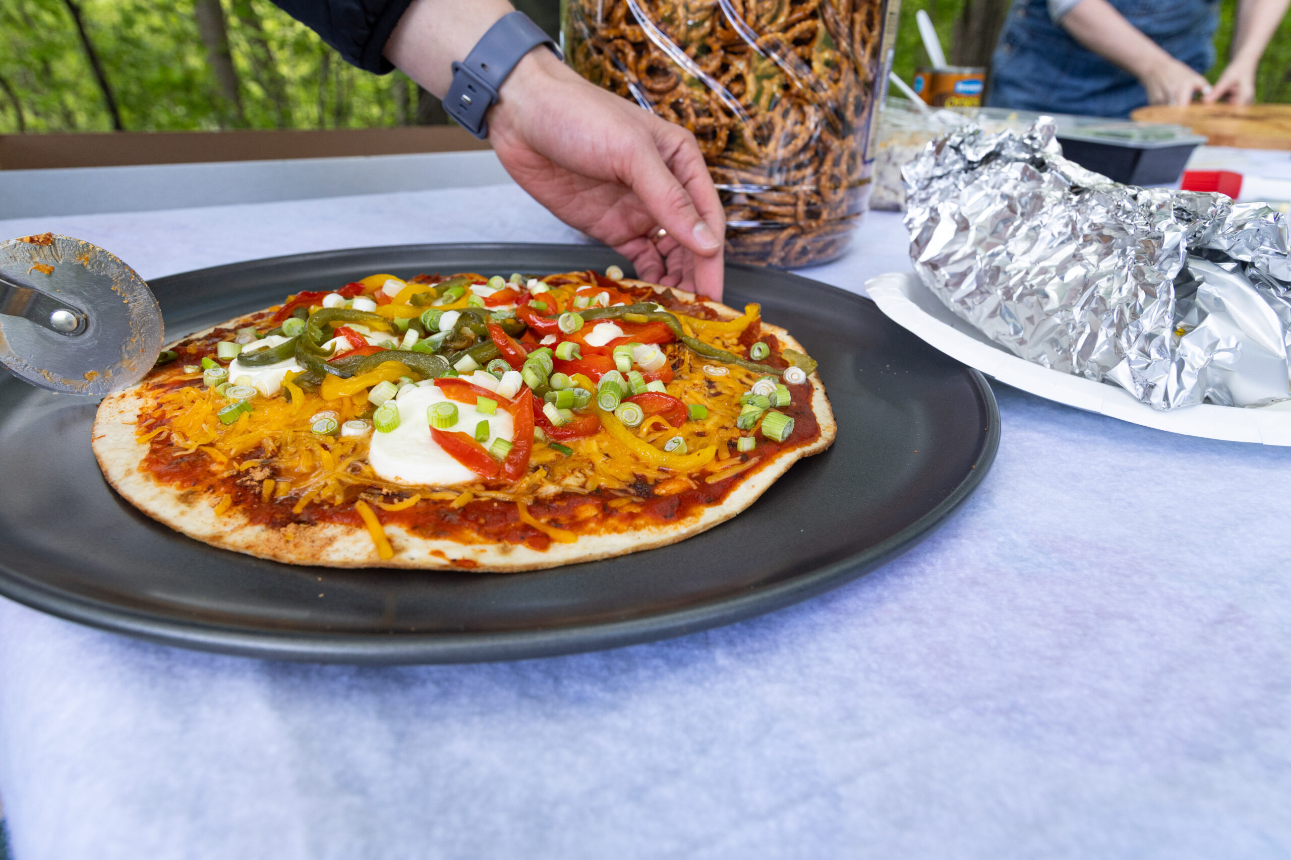 7. Place pizza on the grill or bake according to the instructions on the back of the Ultra Thin Pizza Crust packaging